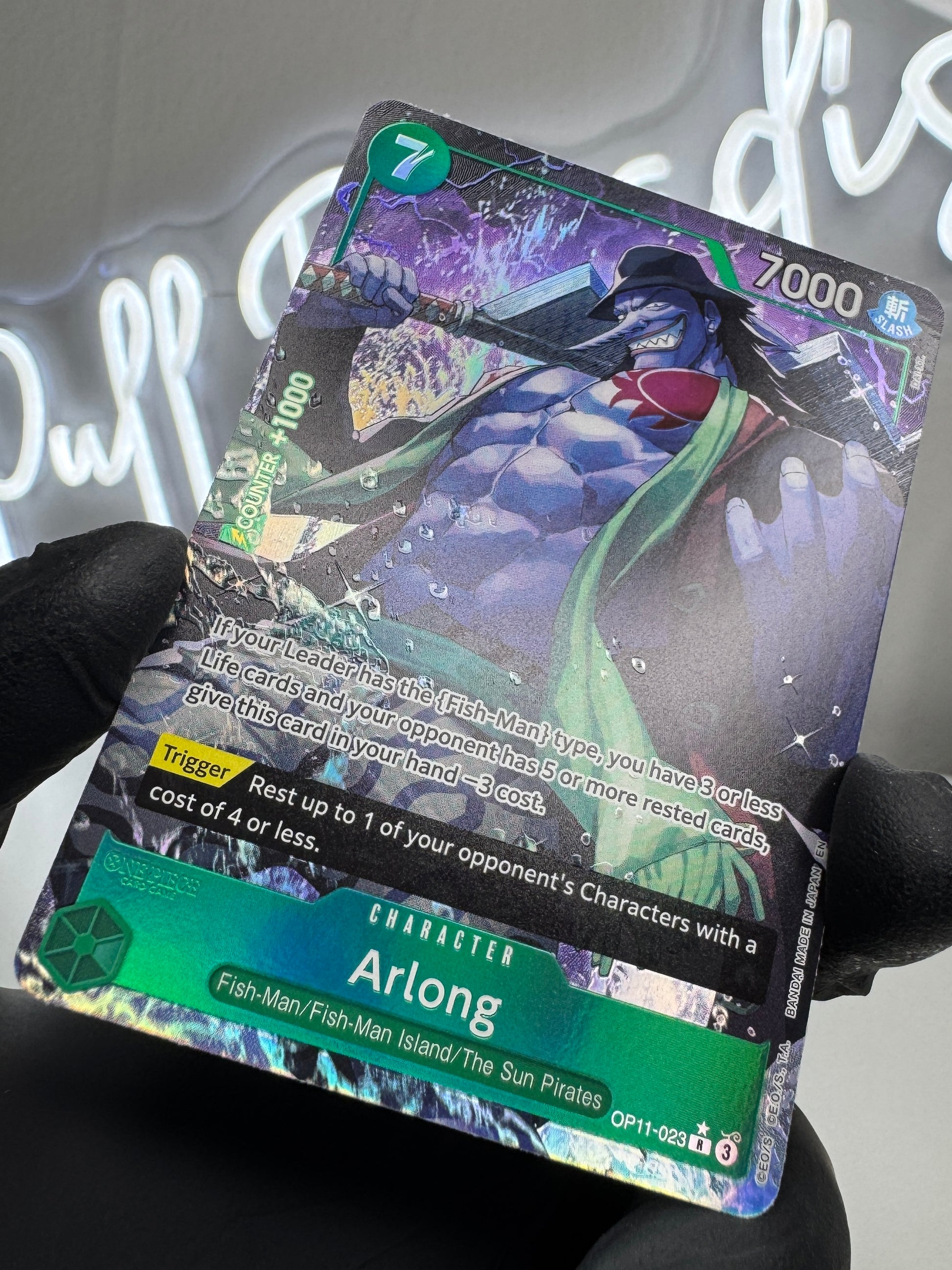 Carta Arlong (OP11-023) in versione Rare – Alternative Art del set One Piece Card Game OP-11, in lingua inglese 🇬🇧 e in condizioni Mint/Near Mint (come nuova).