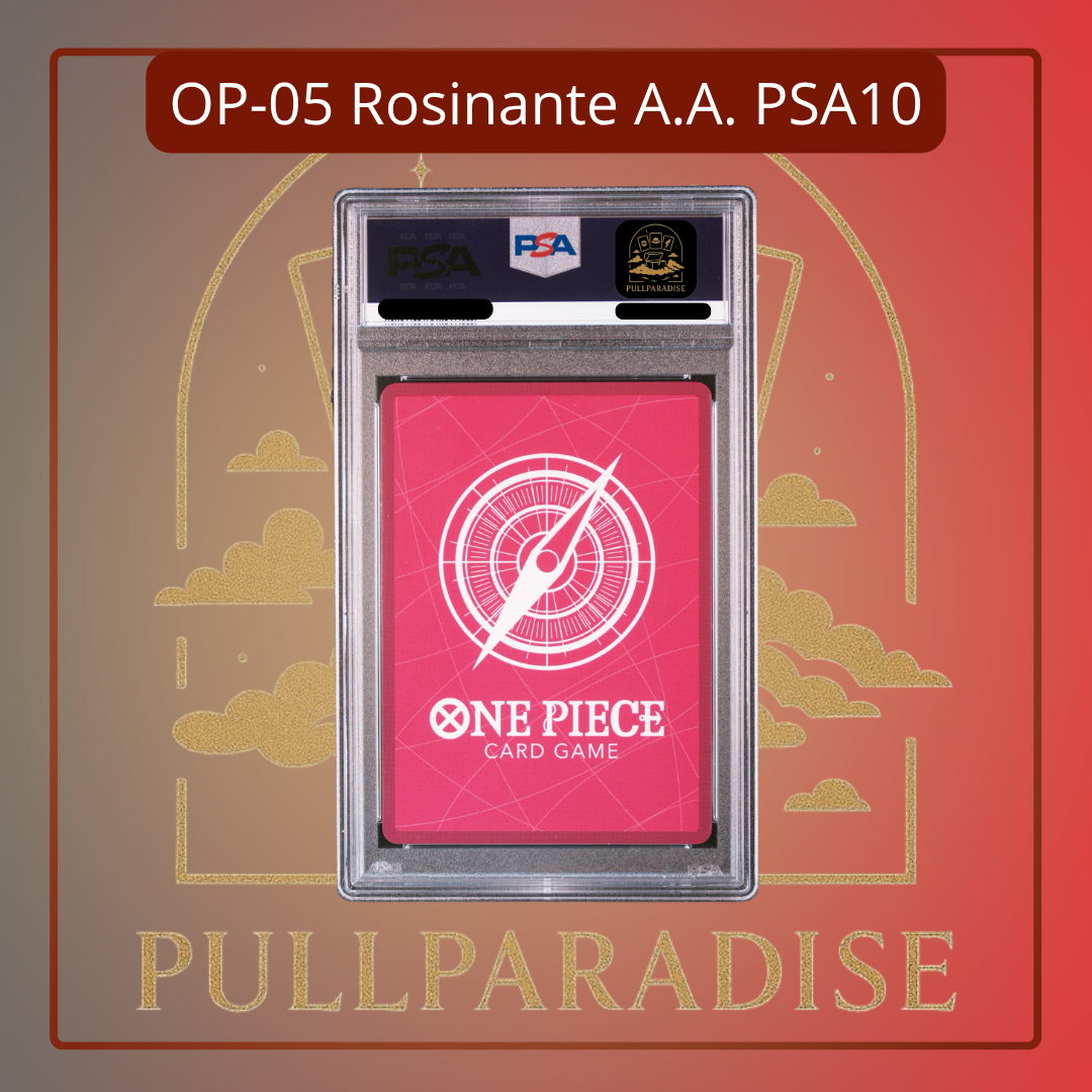 Questa carta di Donquijote Rosinante Alternate Art dal set OP-05 – Awakening of the New Era è certificata PSA 10 GEM MINT, il massimo grado di qualità riconosciuto da PSA.